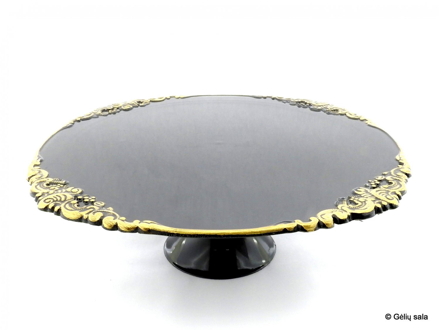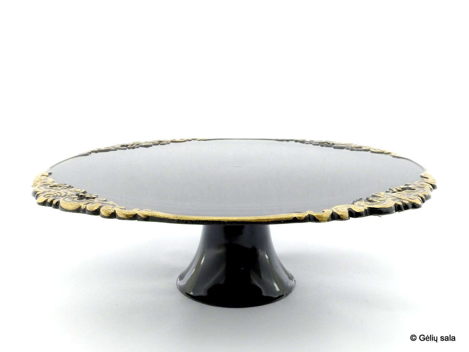 Plastic cake plate black with gold rim