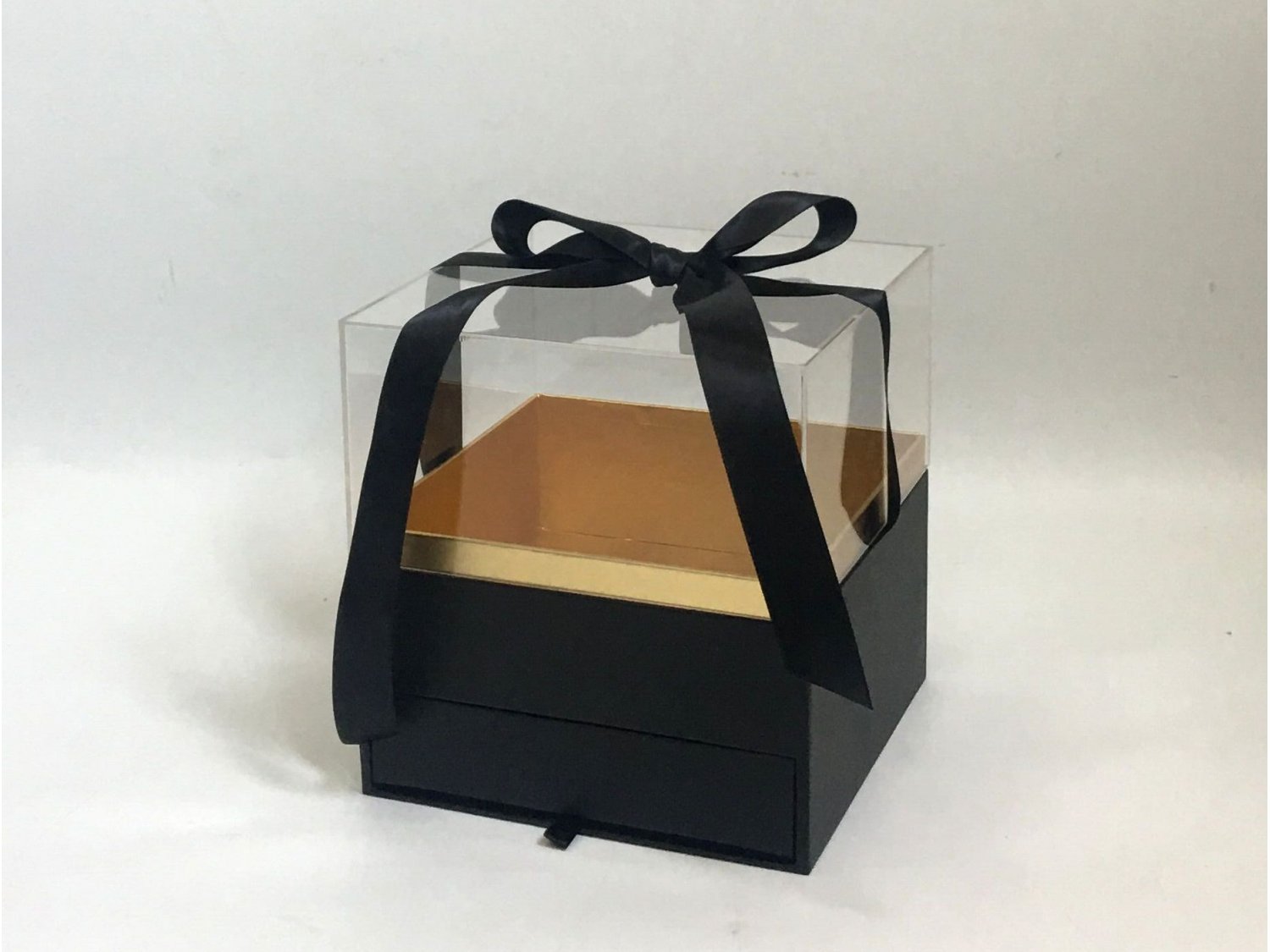 Gėlių dėžutė su stalčiuku "dovana" juoda