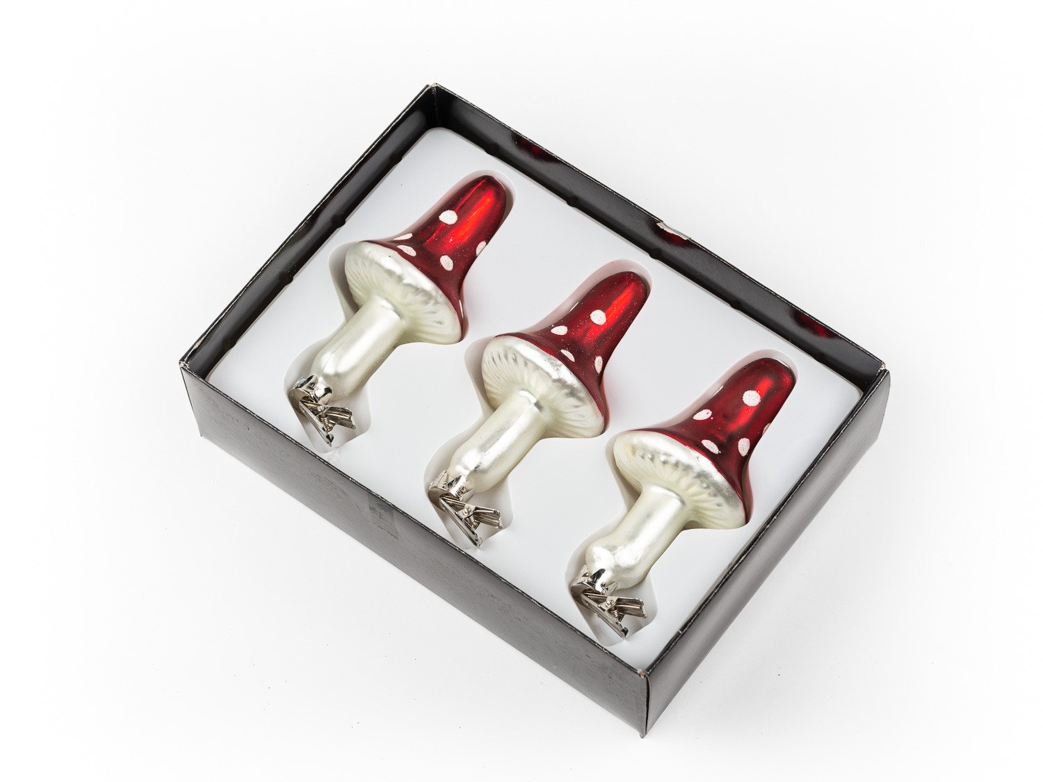 Stiklinis prisegamas kalėdinis žaisliukas - musmirė